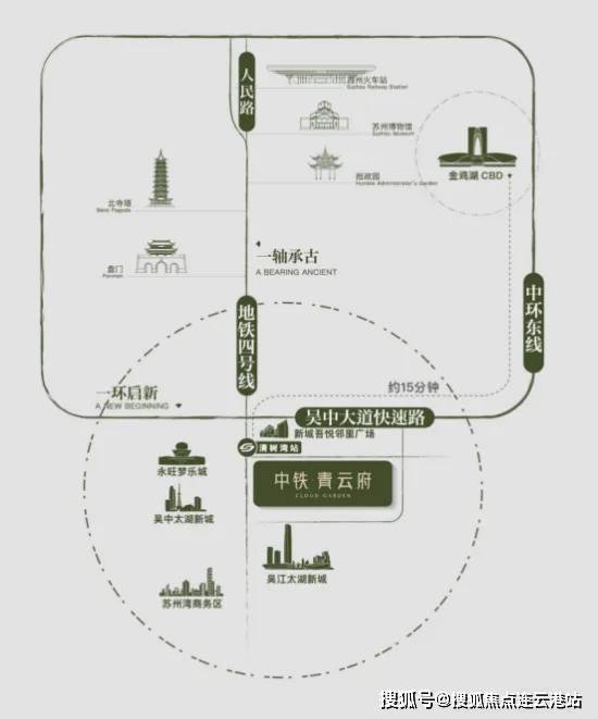 ◎发展之环:中环东接园区产经引擎,西融狮山创新脉络,南承太湖新城生态蓝图,北启高铁枢纽经济,便捷通达苏州多中心,启幕现代化城市发展新篇章。