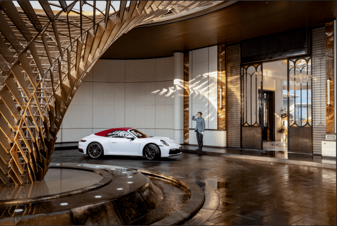 此外,海上·清和玺将奢宅的功能充分融入空间思考,留有专属的访客车位,私人司机休憩室、VIP业主洗车等。在场域设计中,空间展开成星级酒店式、可社交的中央场所,访客和业主可实现无界的会所观赏和交互。