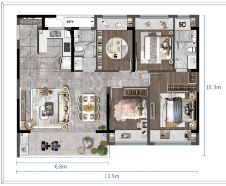得房率约75%双阳台设计横厅布局南北通透,采光优越