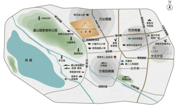 自然景观:毗邻虞山国家森林公园、尚湖风景区,步行可达公园绿地