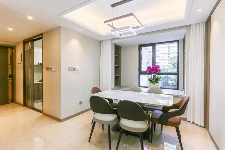 楼间距超40米,外立面采用灰色铝板+浅灰石材,融合新加坡园林水系理念