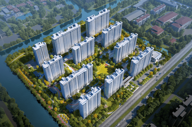 社区三面环水,形成半岛式社区格局,自然景观优越