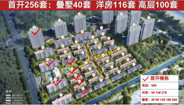 【首开楼栋】:叠墅40套,洋房116套,高层100套,共计256套