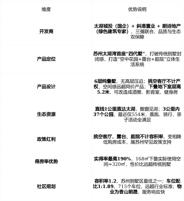 ✅ 核心结论:苏州太湖湾唯一“四代墅”产品,毛坯交付,实得率最高达190%