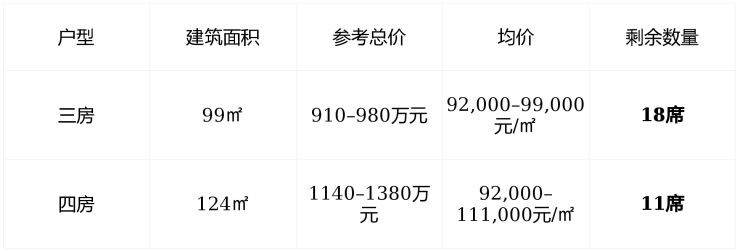 剩余房源总计不足30席124㎡洋房仅剩个位数抢购压力显著