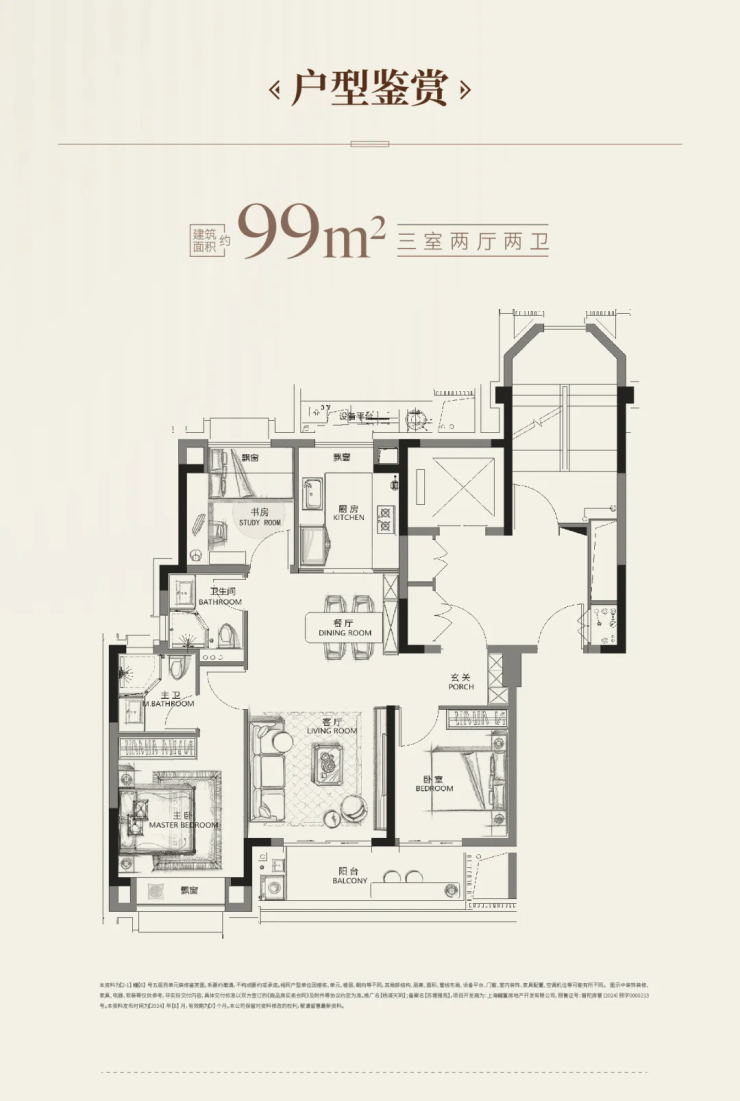 99㎡三房“飞机户型”无连廊南北通透独立玄关得房率约76%无浪费面积
