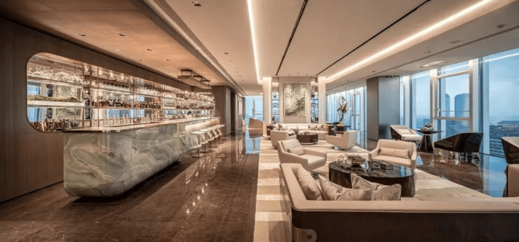 51层设2000㎡云端会所,含恒温泳池、私宴厅、行政酒廊、屋顶花园,耗资超亿元打造,对标W酒店服务标准