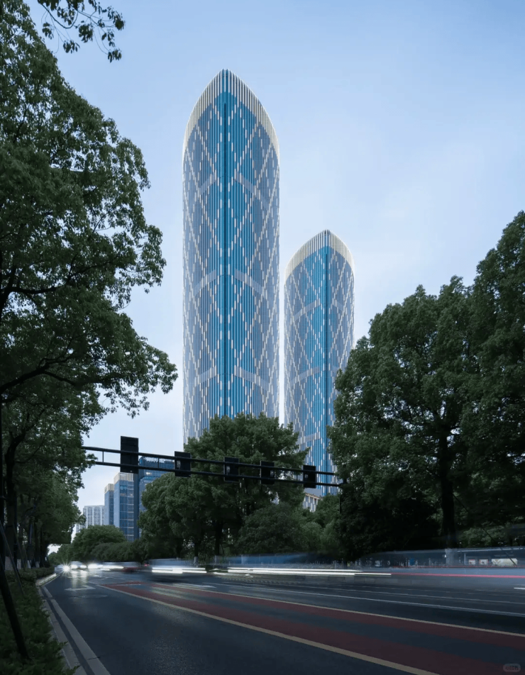 建筑高度:双塔249.9米,共59层,被誉为“小杭州之门”