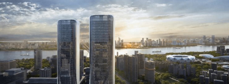 位置:杭州市滨江区江南大道9号,毗邻奥体中心(直线1.6公里),南侧紧邻10万方“智慧金钥匙”中央公园,北瞰钱塘江一线景观