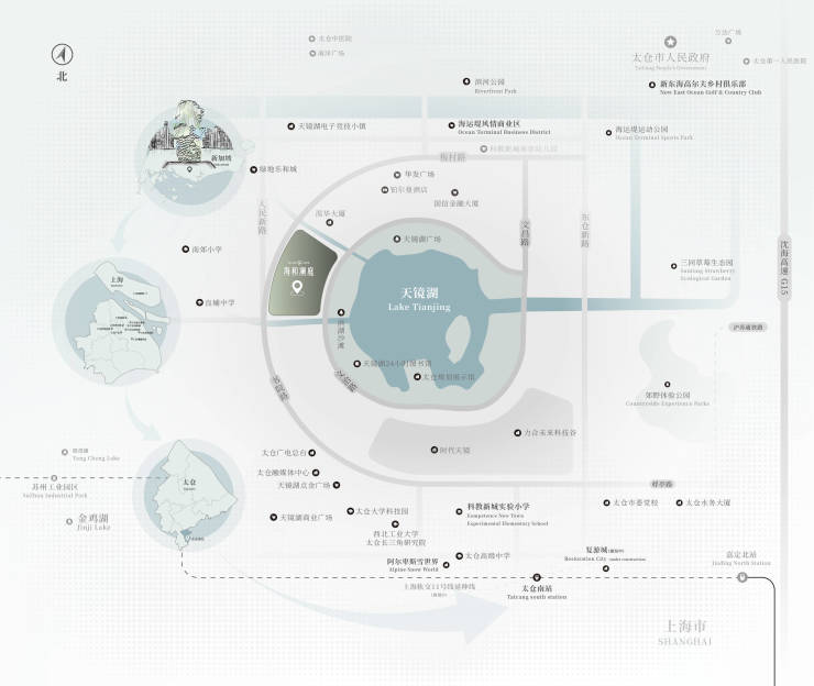 海和澜庭是由仁恒置地联合太仓城投、娄高新三大国企匠心打造的高端低密社区,位于太仓市科教新城良辅路与文治路交汇处, 毗邻52万㎡天镜湖公园,是太仓稀缺的一线临湖豪宅项目。项目总占地约6.6万㎡,总建筑面积15.5万㎡,容积率仅1.5,绿化率达37%,规划25栋住宅共414户,车位配比高达1:2.7。