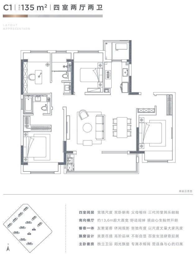 户型配置:建面约105、125、135、165、220㎡