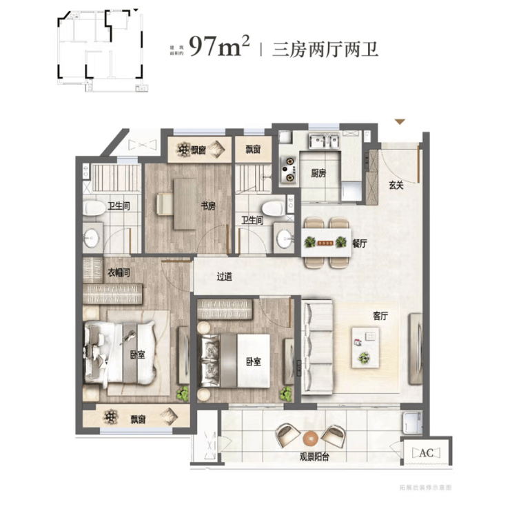 建面约97㎡ 三房两厅两卫