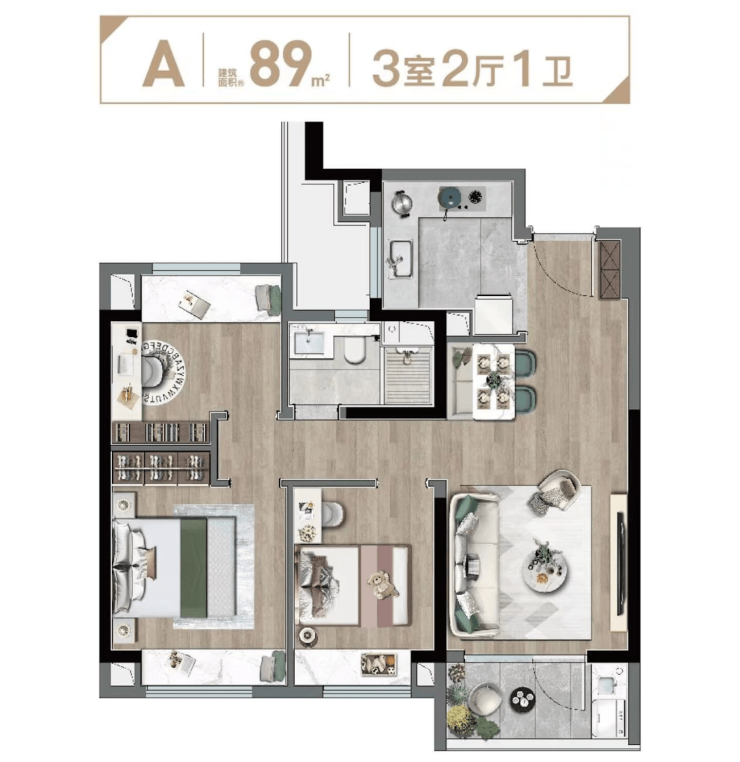 89㎡ 15,000–16,000元/㎡ 140–155万元 刚需首套、年轻夫妻 三室两厅一卫,得房率高,去化最快
