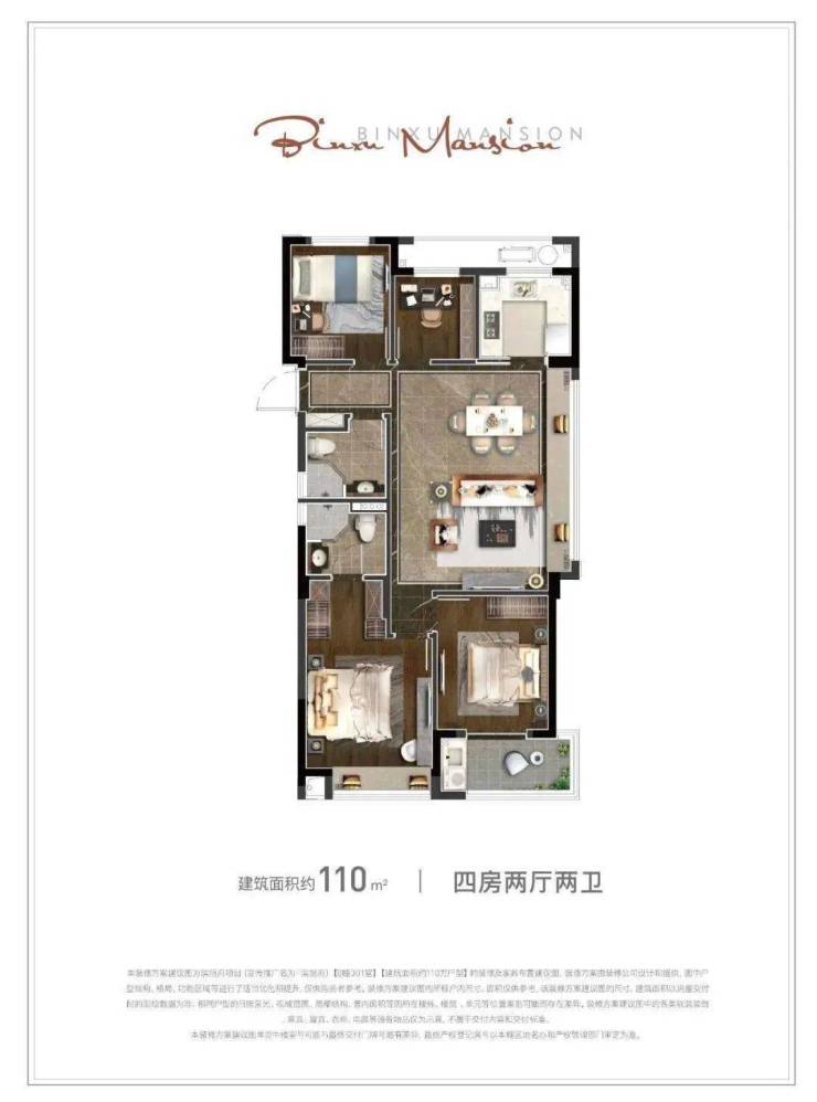 110方 E户型 四房两厅两卫