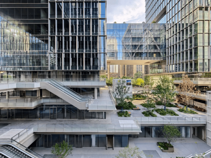 建筑与空间:项目由4栋超甲级办公楼围合组成,标准层高约4.2-4.3米,提供300平方米起灵活分割的办公空间,整层面积约2300-2500平方米,采用无柱设计。大堂为约13.5米挑高、约800平方米的星光艺术大堂,设计灵感源自南宋汝窑瓷韵。