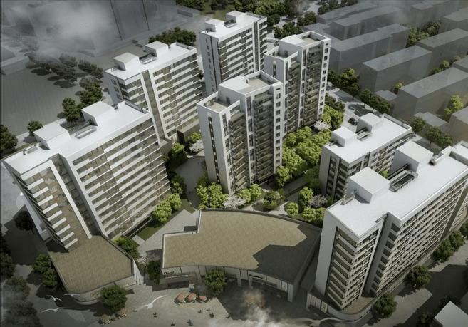 北地块:7-12层平层SOHO,容积率2.5,采用陶板幕墙/玻璃幕墙外立面