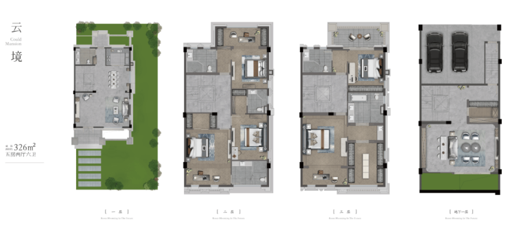 所有户型均采用“一门一户、前庭后院”设计,地下室可拓展为影音室、酒窖、茶室等,阁楼带老虎窗,实现全明空间。