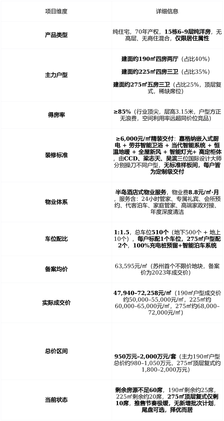 在苏州“TOD主导、高密度围城”的背景下,它是 唯一以“半岛酒店”为蓝本、全系190㎡起大平层、精装核价超6000元/㎡、重奢会所成本超2.5亿、业主圈层高度同频 的孤品级住宅,不是“买房子”,而是“买城市核心圈层的入场券”。