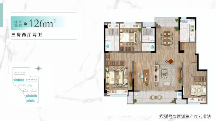 主力户型:126-142㎡四房,均价1.2-1.4万/㎡,总价180-220万/套,一梯两户设计