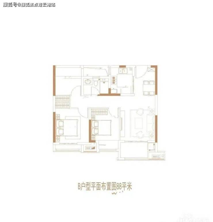 主力户型:2居(建面75㎡) 3居(建面88㎡) 3居(建面98㎡)