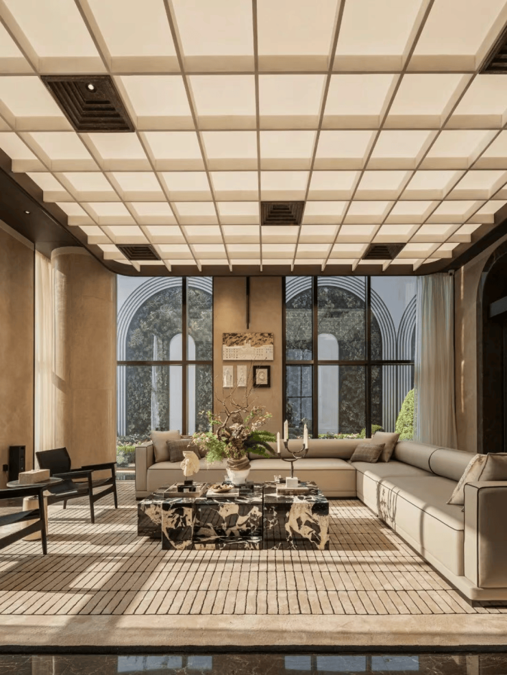 采用6米架空车库+5.6米架空层设计,释放出连续通透的泛会所空间,整合儿童游乐、健身咖啡、艺术展陈等功能,形成“第二客厅”,提升社区互动性与生活便利度 。