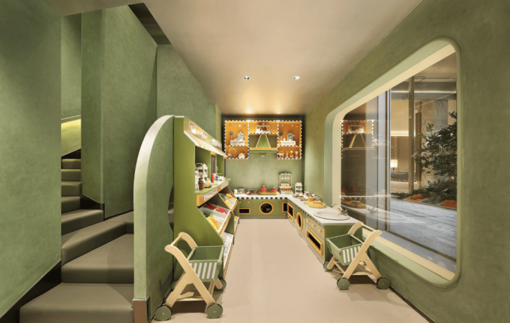 它还把会所跟架空层上下连通,做出了一个完全不输专业儿童乐园的童玩区,里面有6米多高的旋转滑梯,有可以让小朋友穿梭玩闹的「魔法树洞」,有巨大的空中攀爬网架,还有小朋友最爱的玩角色扮演的小厨房……
