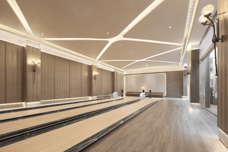 即便单价只有2万+,但和萃揽悦园不仅做了主题众多的会所空间,甚至还安排上了跟超级豪宅义乌凤起潮鸣同款的保龄球馆,配置了3条10米专业滑馆。