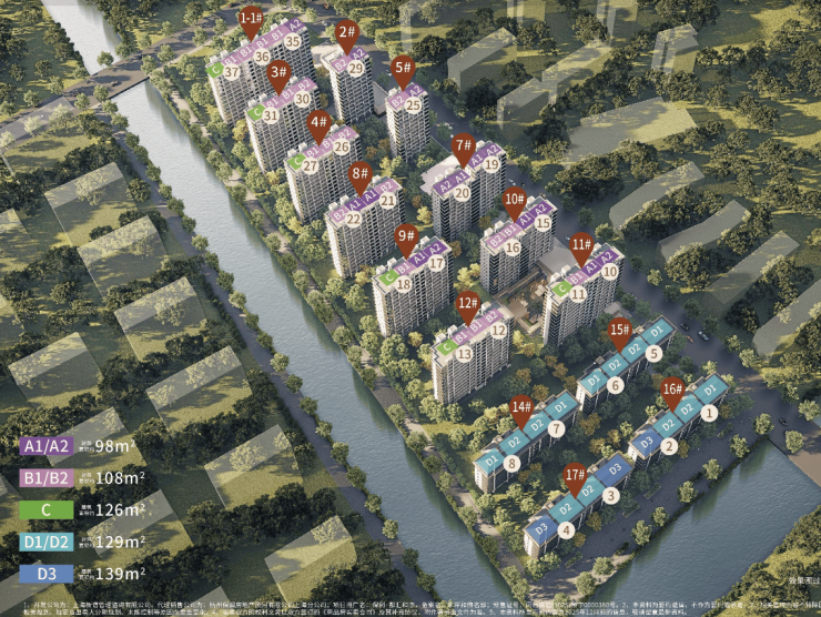 约126㎡4房:四开间朝南,附赠约30㎡,西边套一线临河,可享IMAX级观河景体验,全维度契合改善家庭的居住期待。