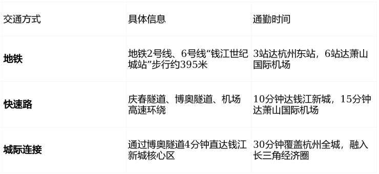 区位:钱江世纪城奥体核心区,奔竞大道与平澜路交汇,坐拥“黄金三角”——毗邻杭州国际博览中心、SKP(2026年开业)、奥体中心