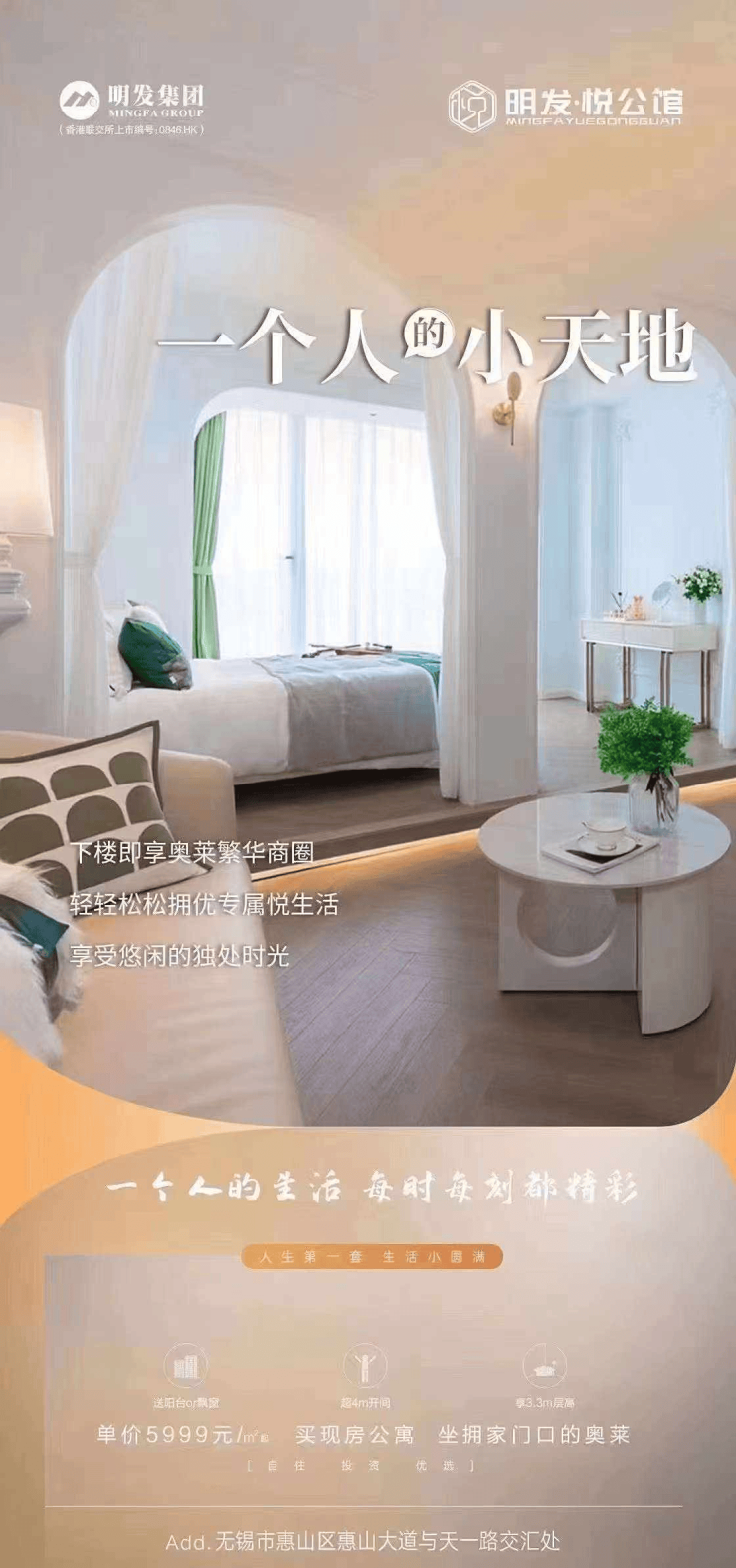 无锡惠山区明发悦公馆位于惠山大道66号无锡悦尚奥莱,是集住宅与商业于一体的综合项目。