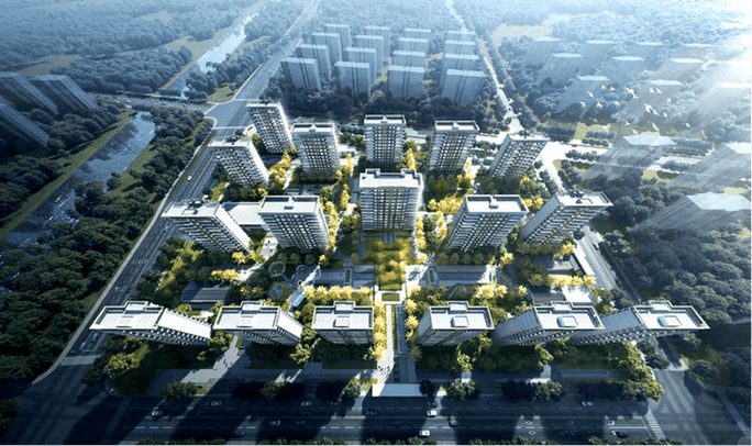 国企开发低密社区,采用"水韵主题"中轴景观带