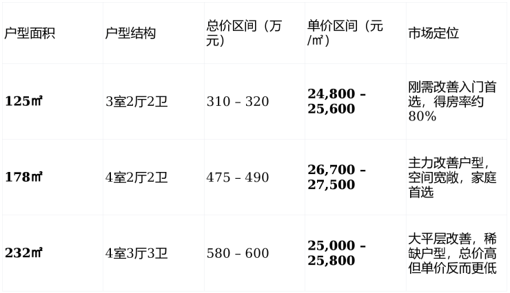 125㎡户型因户型方正、得房率高,成为 成交主力 ,占总成交量超60%。
