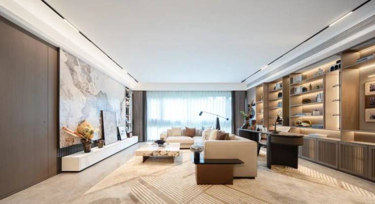 全系约5-6.2米宽厅设计,搭配全景落地窗,将阳光与风景最大尺度引入室内。博世地暖系统(卫生间无地暖)、格力新风系统、美的中央空调三大系统协同,实现“四季如春”的恒温体验。