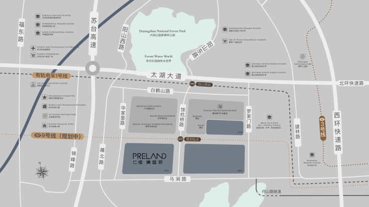 教育集群:苏州外国语学校附属幼儿园、高新区实验小学(秦馀分校)、景山实验初中等