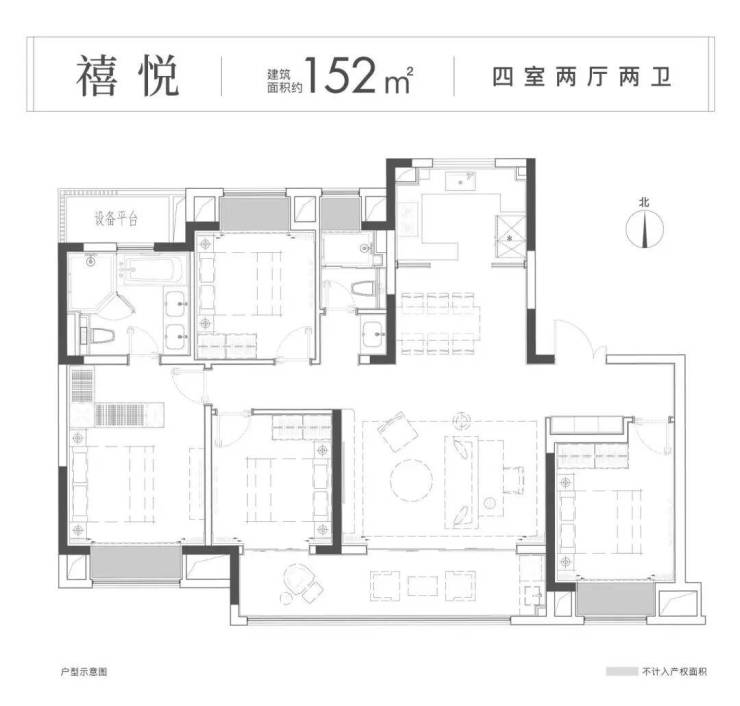 133㎡四房:经典竖厅设计,南向双阳台,主卧套房带独立衣帽间