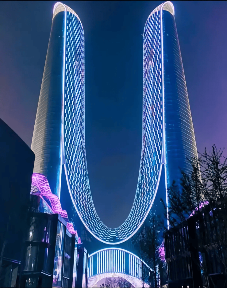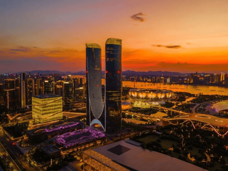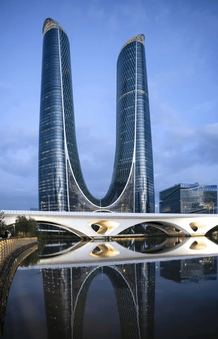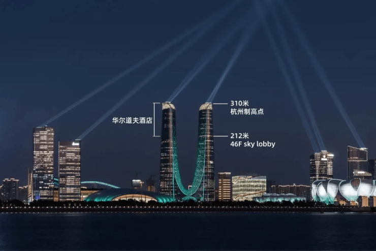 建筑设计:由SOM事务所(迪拜塔设计方)操刀,以“H”型双峰为灵感,寓意“杭州之门”