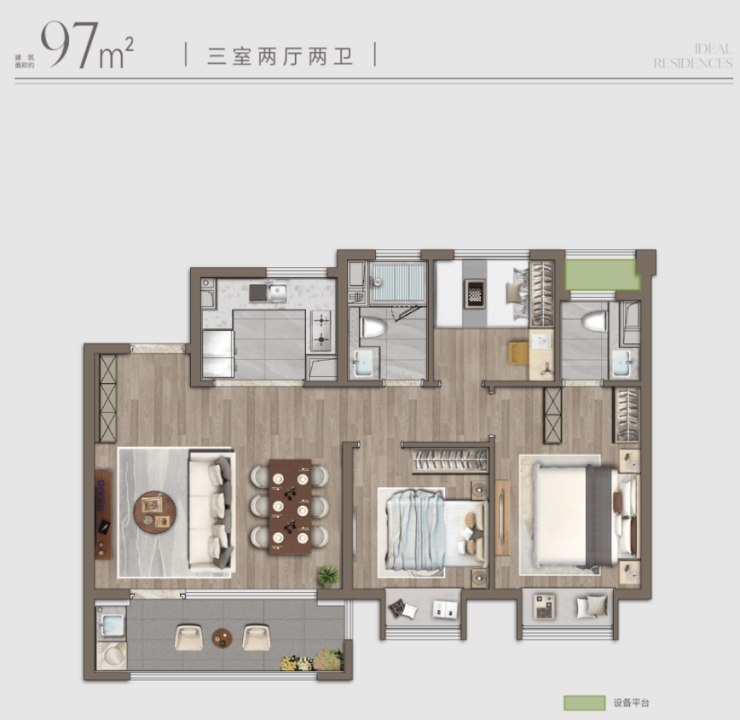 【建面97㎡3居】180.0-195.0万-分布于6号楼 1号楼 ,2梯4户,总楼层18F