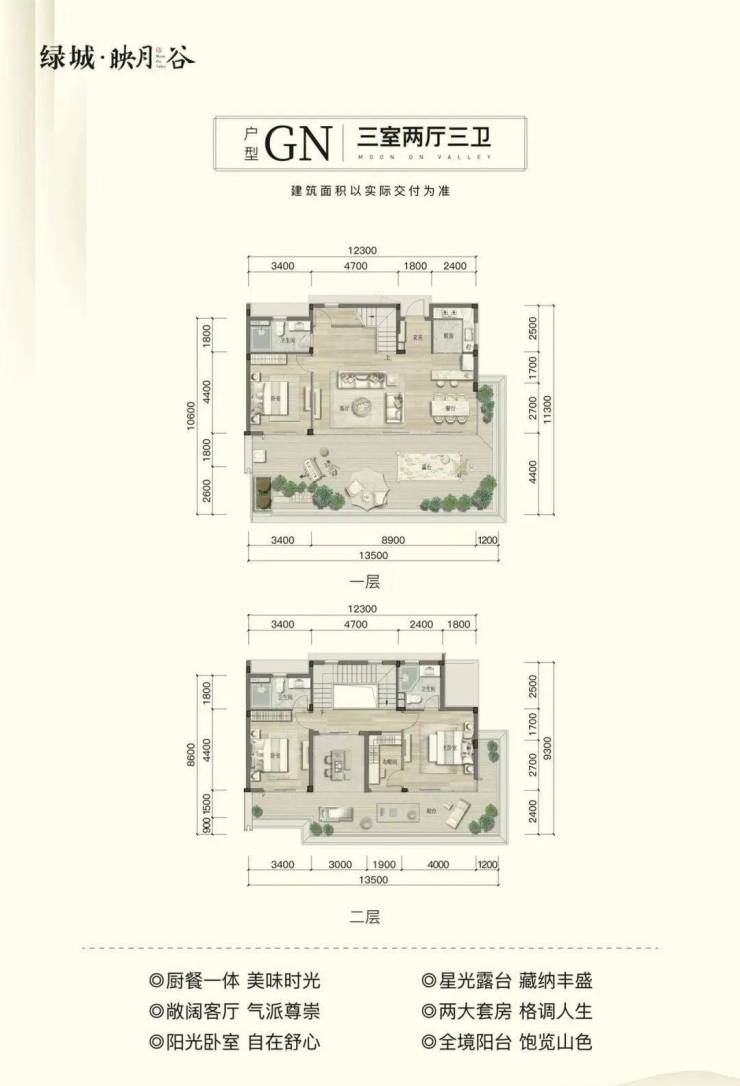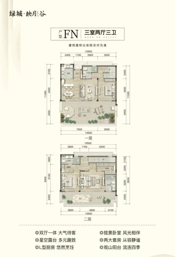 首开主力户型面积:两层山院约160㎡/180㎡/200㎡;三层山院约220㎡/255㎡