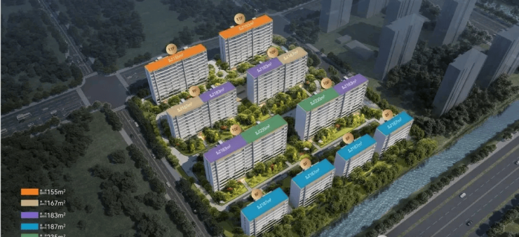 户型面积:主力户型为建面约154-233㎡的四居产品,空间尺度阔绰,满足多代同堂或高阶改善需求 。