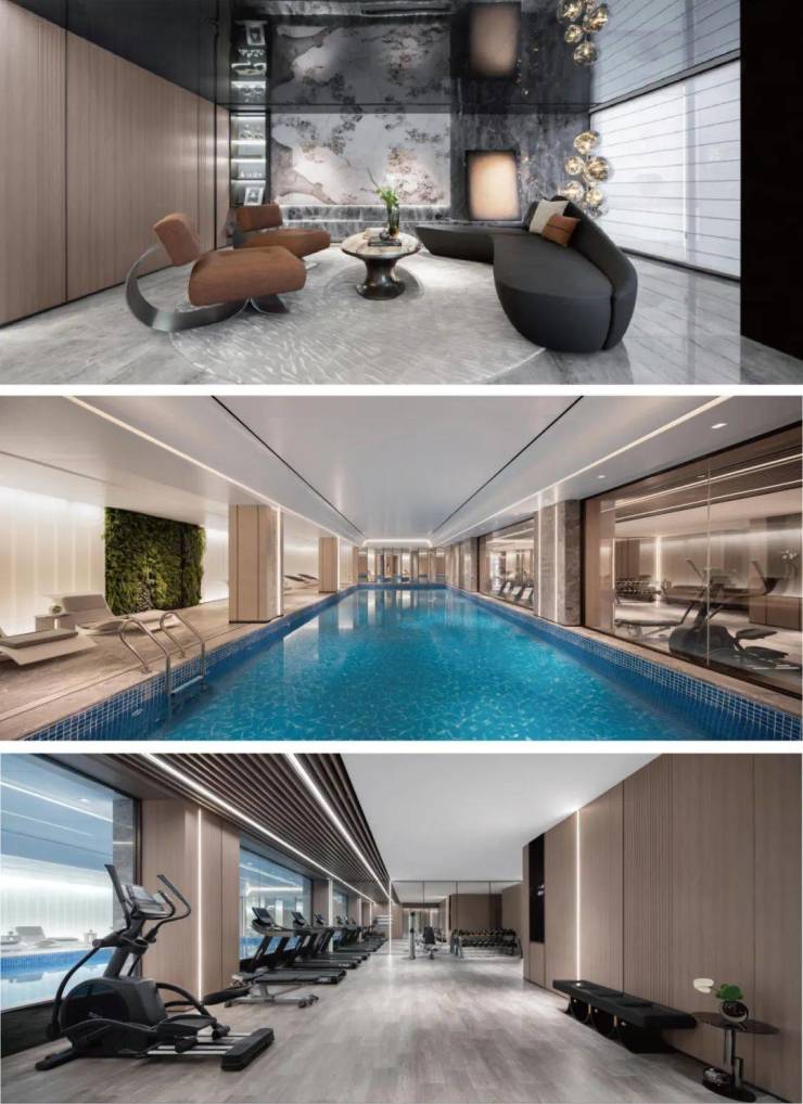 约500㎡地下会所空间,以“江河汇流”的澎湃与现代极简美学交织,营造出大气奢雅的氛围。这里不仅是一个多功能的运动主场,更是一个私密的社交场域;