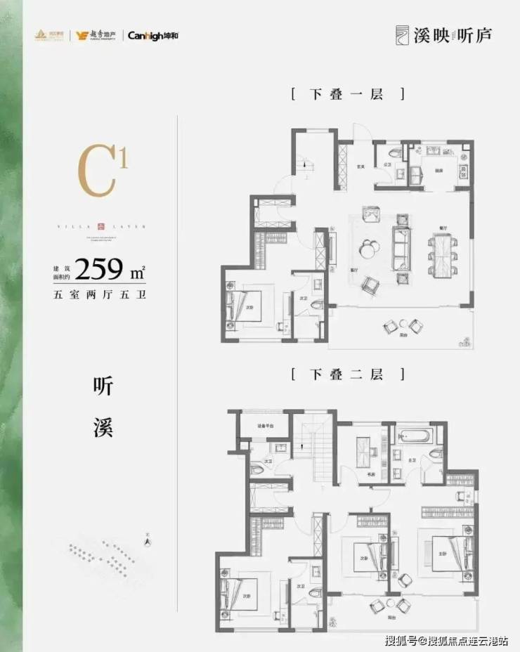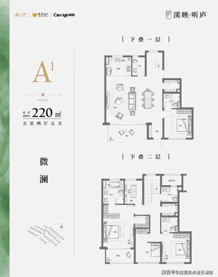 主力户型为建面约200-260平方米的叠墅,包含5室2厅设计,南北通透,动静分离。