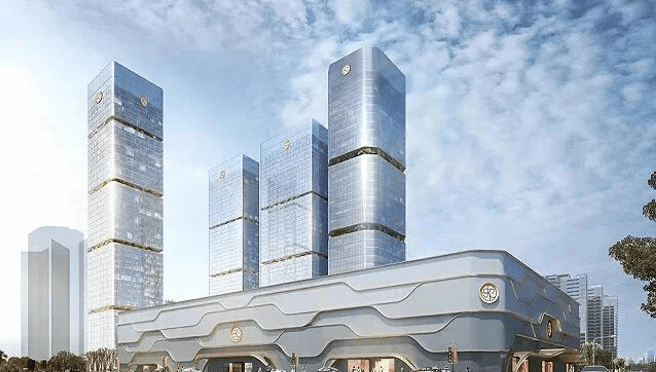 外立面 “丝绸流线”设计,灵感源自杭州织锦文化,玻璃幕墙如裙摆倾泻,夜间灯光极具辨识度