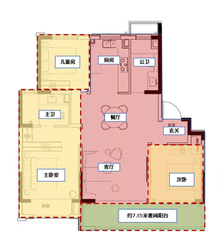 但是,对于另一部分有特殊需求的客户来说,可能他们家里人口并不多,也不需要用到3个房间,那他们完全可以 把客厅和南向次卧打通,形成一个尺度奢阔、功能齐全的休闲空间, 可以约朋友来家里喝喝下午茶、开个party,给自己的小宠物们搭建更豪华的玩乐空间……