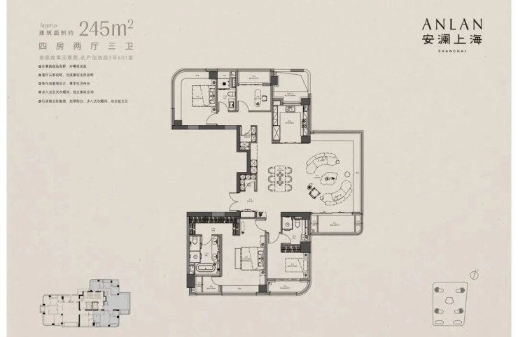 238㎡–245㎡ 四房:LDKB一体化+独立佣人房,总价3700万–4800万元