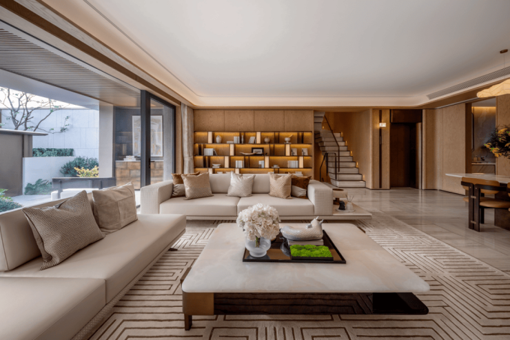 下叠300㎡(在售):四房两厅五卫,拓展后使用面积约430㎡,带约45–55㎡庭院 + 地下室可改造为影音室、健身房等多功能空间 。
