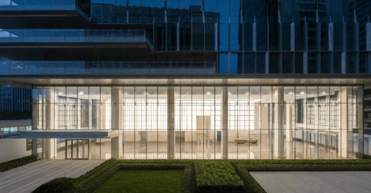 约13.5米三层挑高、约800㎡星光艺术大堂,将城市山水底蕴作为企业第一张名片