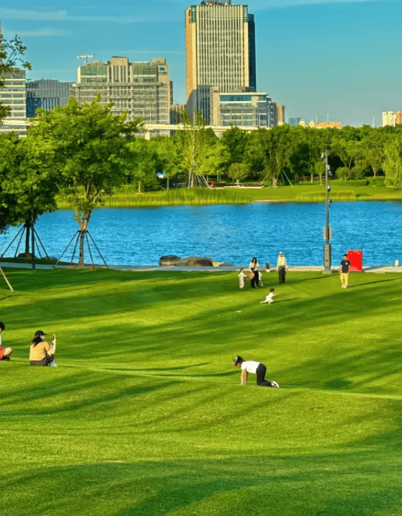 绿化率:30%,园林采用“一环、两核心、多组团”布局,设阳光草坪与全龄儿童乐园