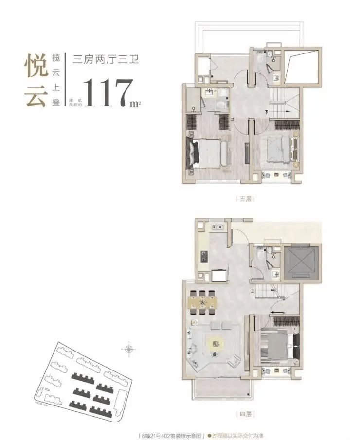 3室2厅3卫,建面约117㎡,总价约514万。