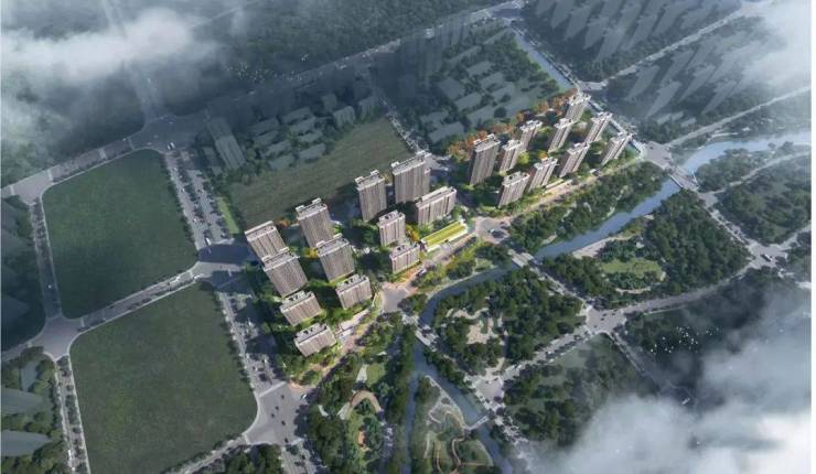 绿化系统:通过1.2公里三条纵向绿轴和两条横向水系,串联中央花园、组团绿地与屋顶花园,整体绿化覆盖率超35%