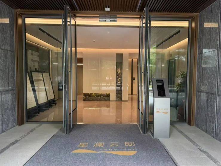 而架空层的另一侧,就是每栋楼的精装入户大堂,灰色石材搭配香槟金,立柱式门禁人脸识别,内部两梯两户设计,归家入户便捷舒适。